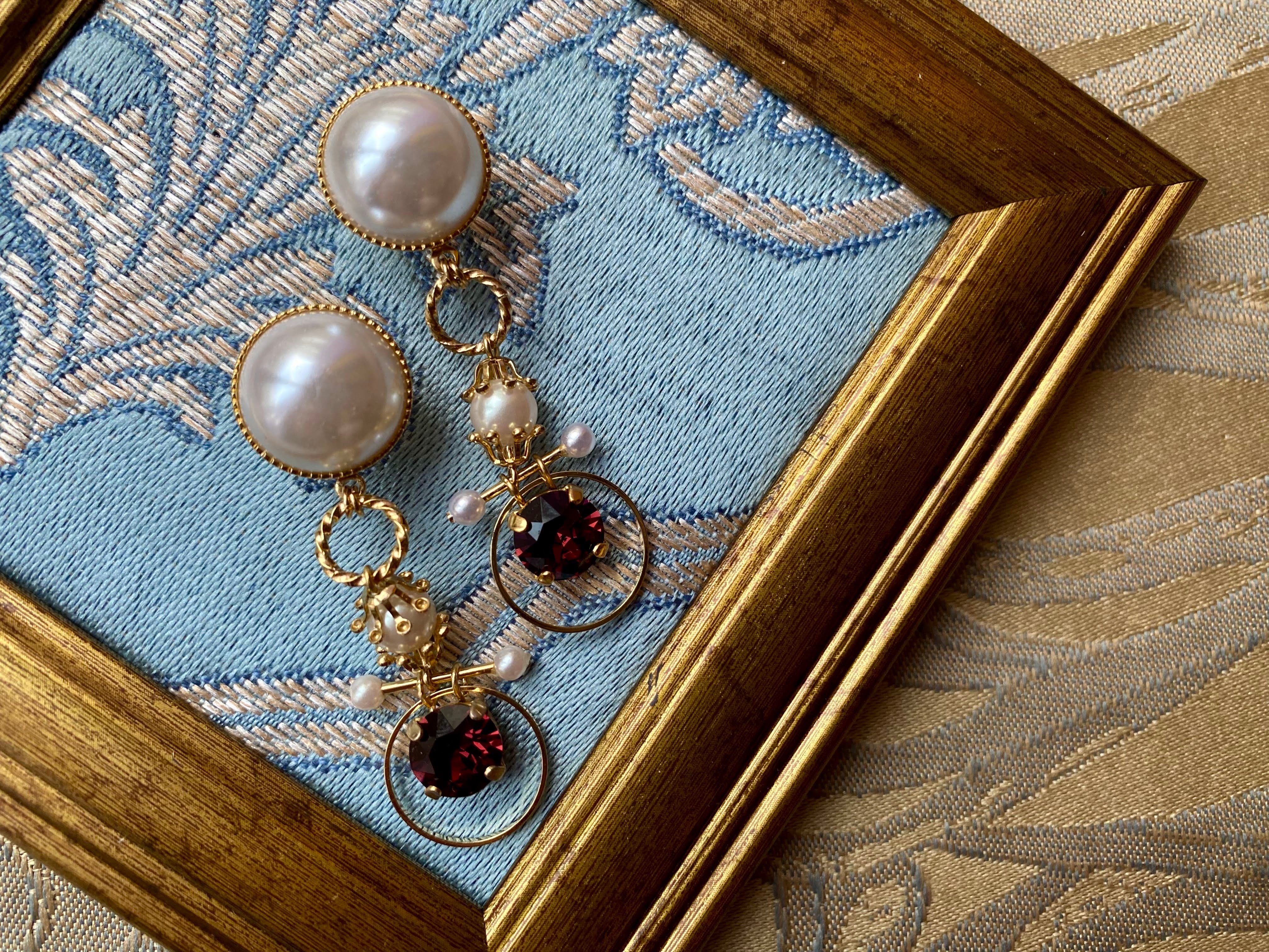 思わず手に取り宝石を見るように眺めてしまう、繊細で美しいボタンパーツは職人が手掛けたデザイン 美しい鏡を連想させる高級感のあるデザインに一目惚れをして買い付けました。 素敵なボタンのデザインが引き立つように全体の色味を抑えたことで、様々なコーディネートに合わせやすくなっています。 ※イヤー金具は特に指定がない場合はチタンピアスをお付けしてお送りいたします。イヤリング金具をご希望の方は【備考欄】にイヤリング希望とご記入ください。 材質:スワロフスキー・クリスタル(ボタン内パーツ、ビーズ)、アクリル、合金、チタン(ピアスポスト部分) サイズ:約7.2×1.7cm 【購入時の注意点】 ・ノークレームノーリターンでお願い致します。 ・丁寧にお作りしておりますがハンドメイドの特性上、個体差があります。 ・ヴィンテージパーツは一点一点個体差がございますので、完璧なものをお求めになる方はご購入をお控えください。 ・あくまでもハンドメイドですので、既製品のような強度はございませんので、予めご了承ください。もし使用中に破損などが生じた場合、修理も承っております。CONTACTからご相談ください。 ・お使いの端末などにより、写真と実物の色味や質感が多少異なって見えることがあります。 ・スマホやパソコンの色味設定(ナイトモードなど)を変えている場合は、写真と実物の色味が多少異なって見えることがあります。 ・実際の色味に近づけて撮影していますが、撮影する場所(屋内や屋外)により色味が微妙に異なって見えることがあります。 ・作品の雰囲気を重視して撮影した写真もございます。 その場合は、雰囲気を重視した写真となるべく実物の色味に見えるように撮影した写真の両方を掲載するように努めております。商品写真を全てご確認の上、ご注文のほどお願いいたします。 ※到着時に不良が生じていた場合はご報告ください。早急に対応させていただきます。 ・金属アレルギーをお持ちの方は、事前に使用パーツの確認をお願いいたします。 ・輸送時の紛失・事故時の責任は負いかねますことを予めご了承ください。