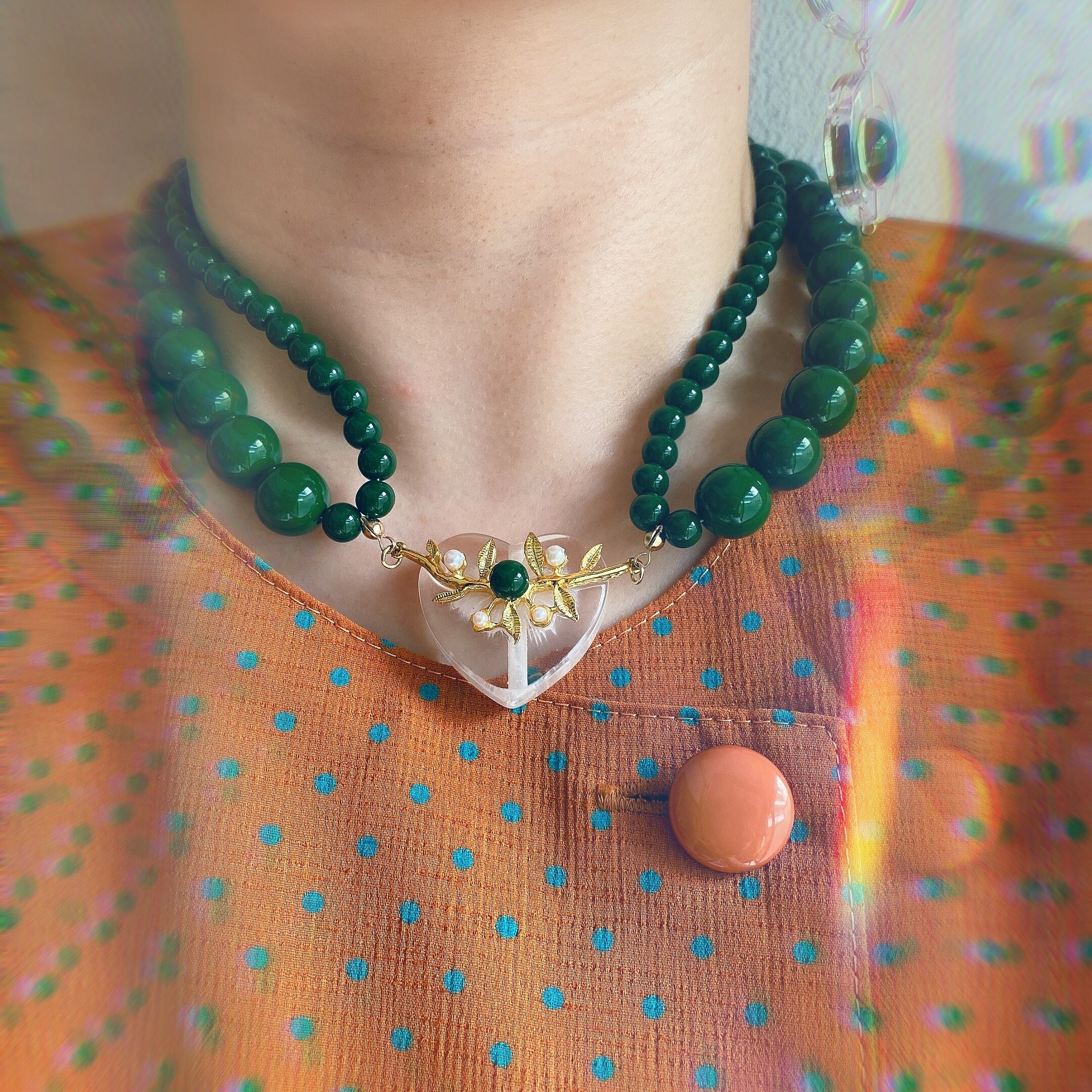 化粧箪笥に眠るネックレス(ダークグリーン)