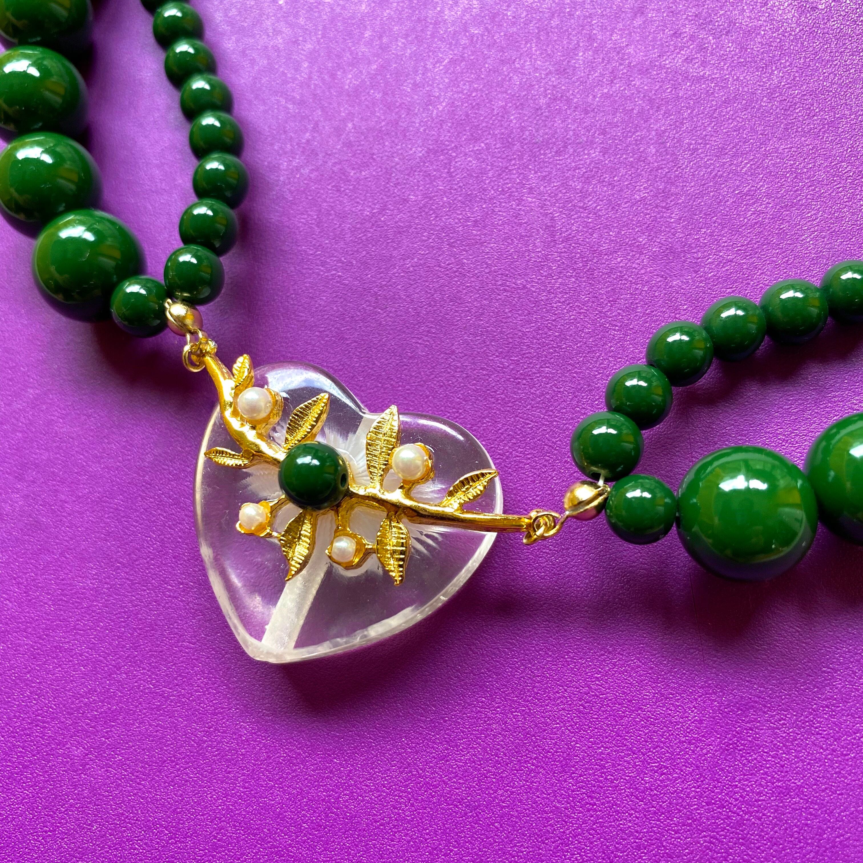 ダークグリーンは大小のビーズを2連に並べたデザインにしました。