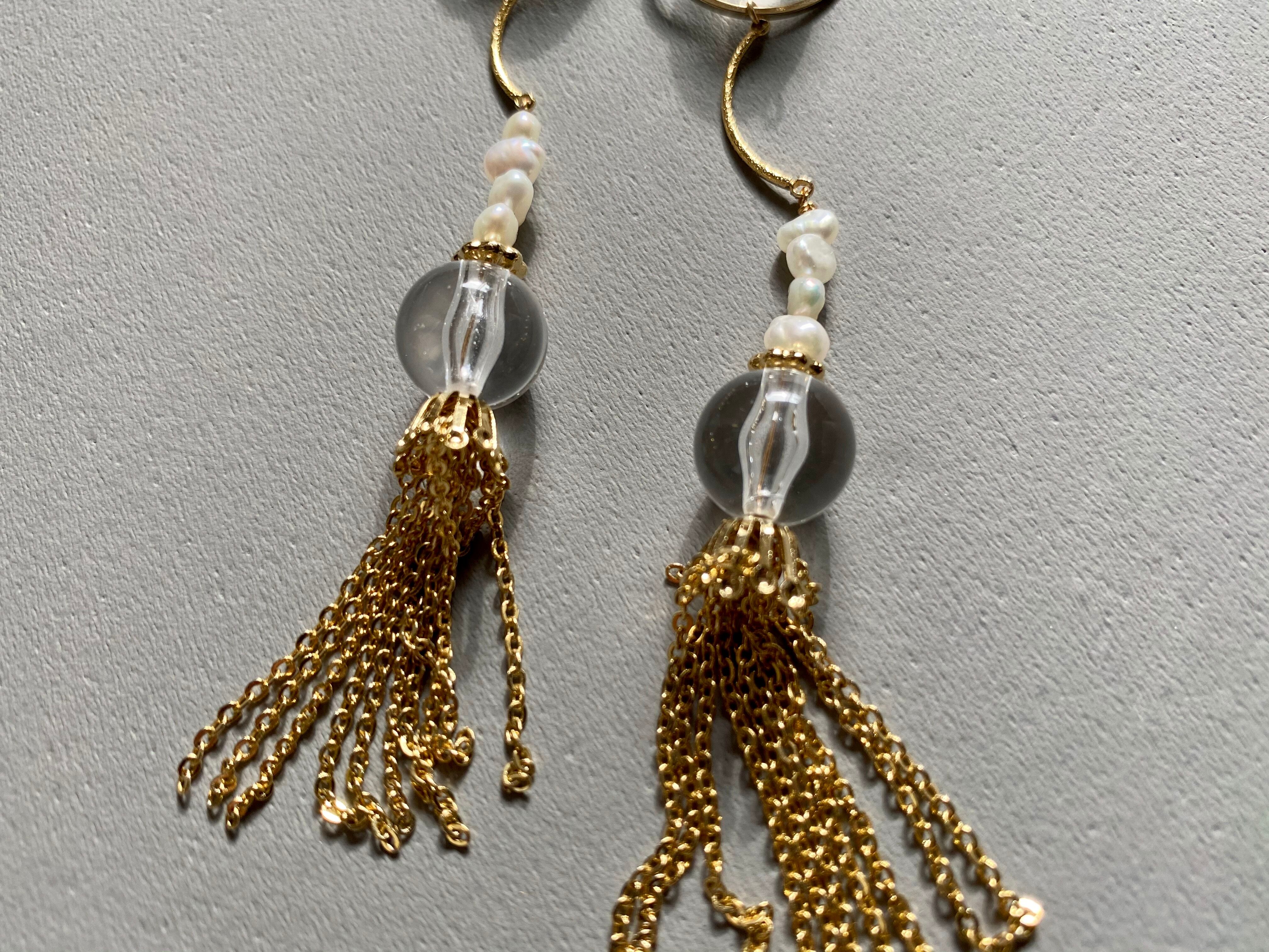 淡水パールや金属などさまざまな素材を組み合わせて作られた