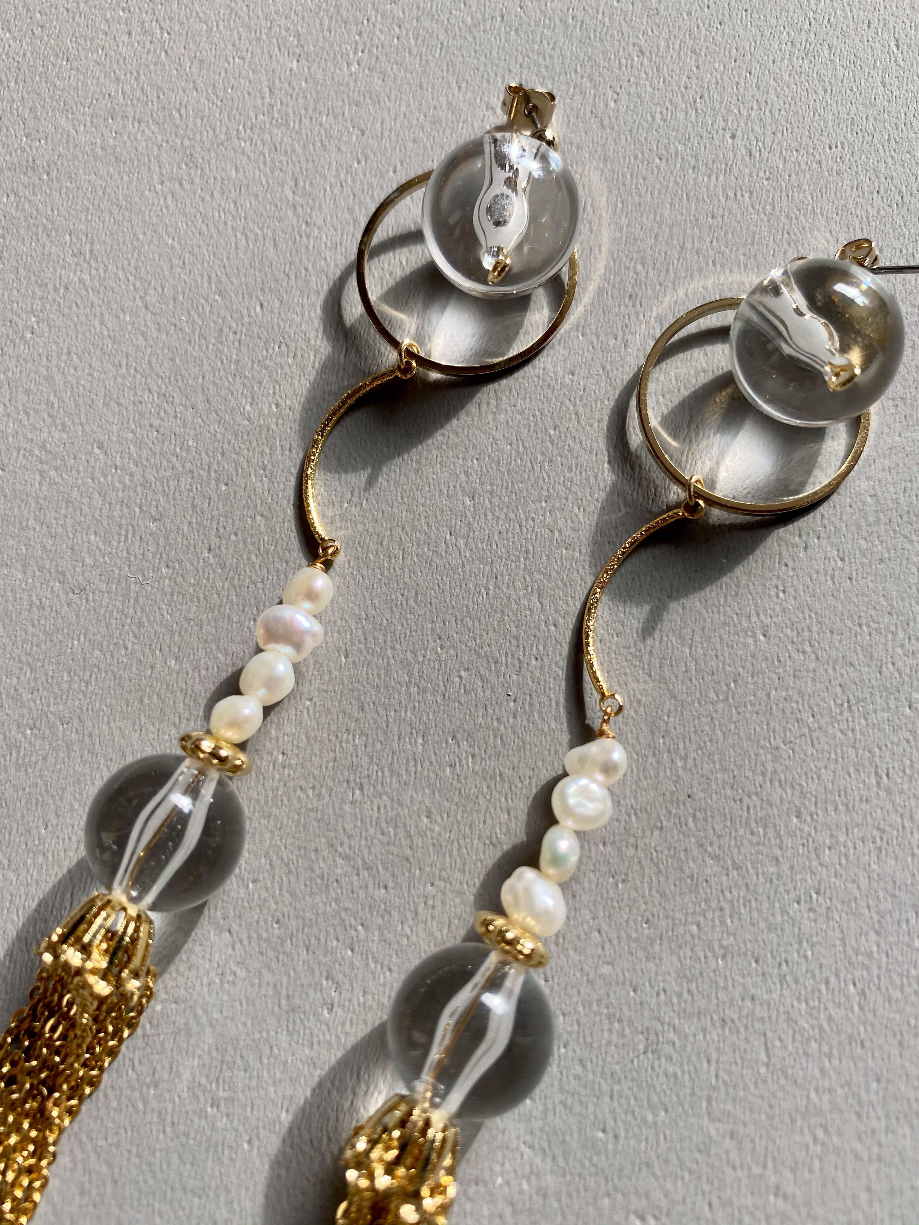 材質:淡水パール、アクリル、合金、チタン(ピアスポスト部分)