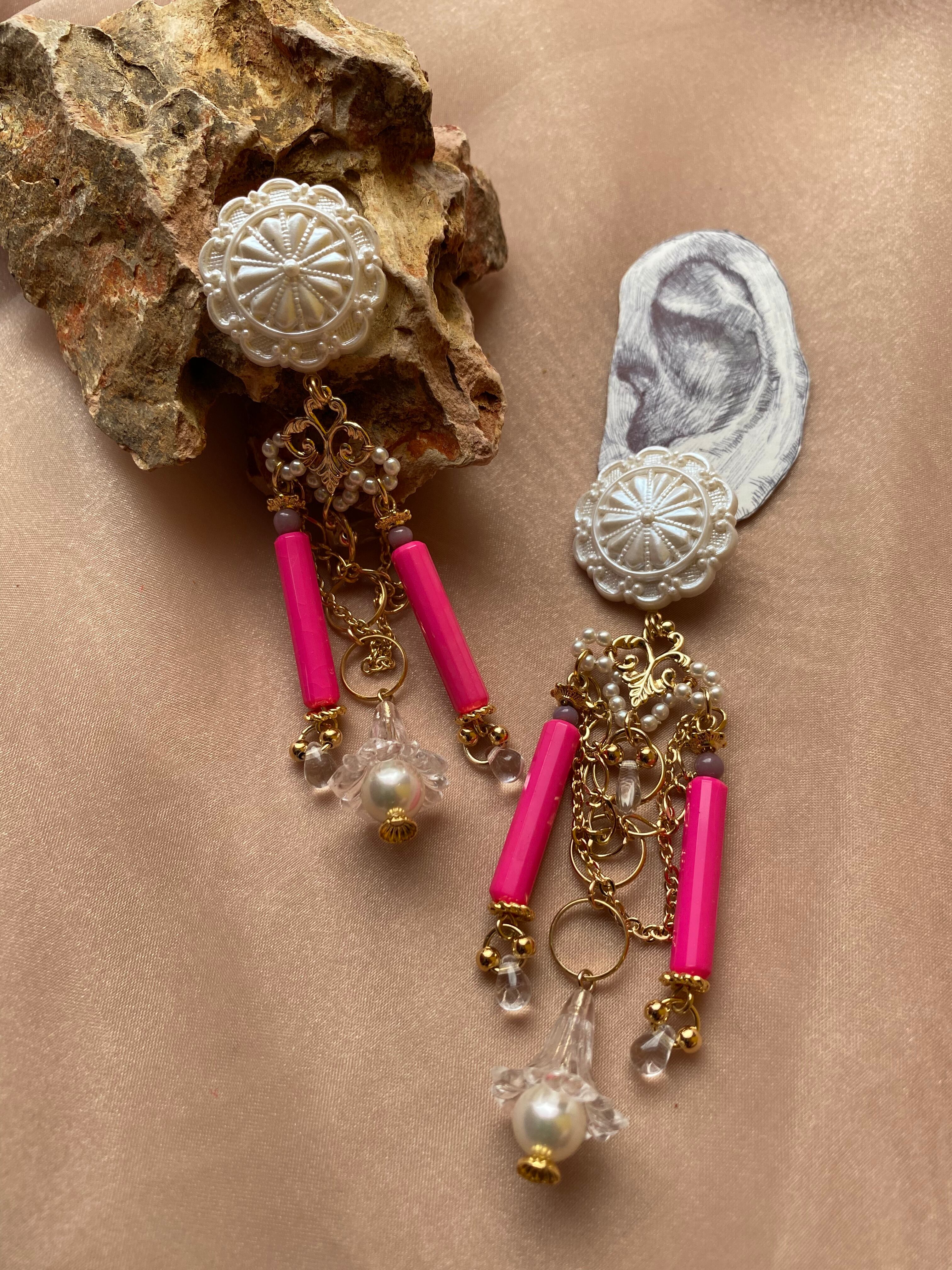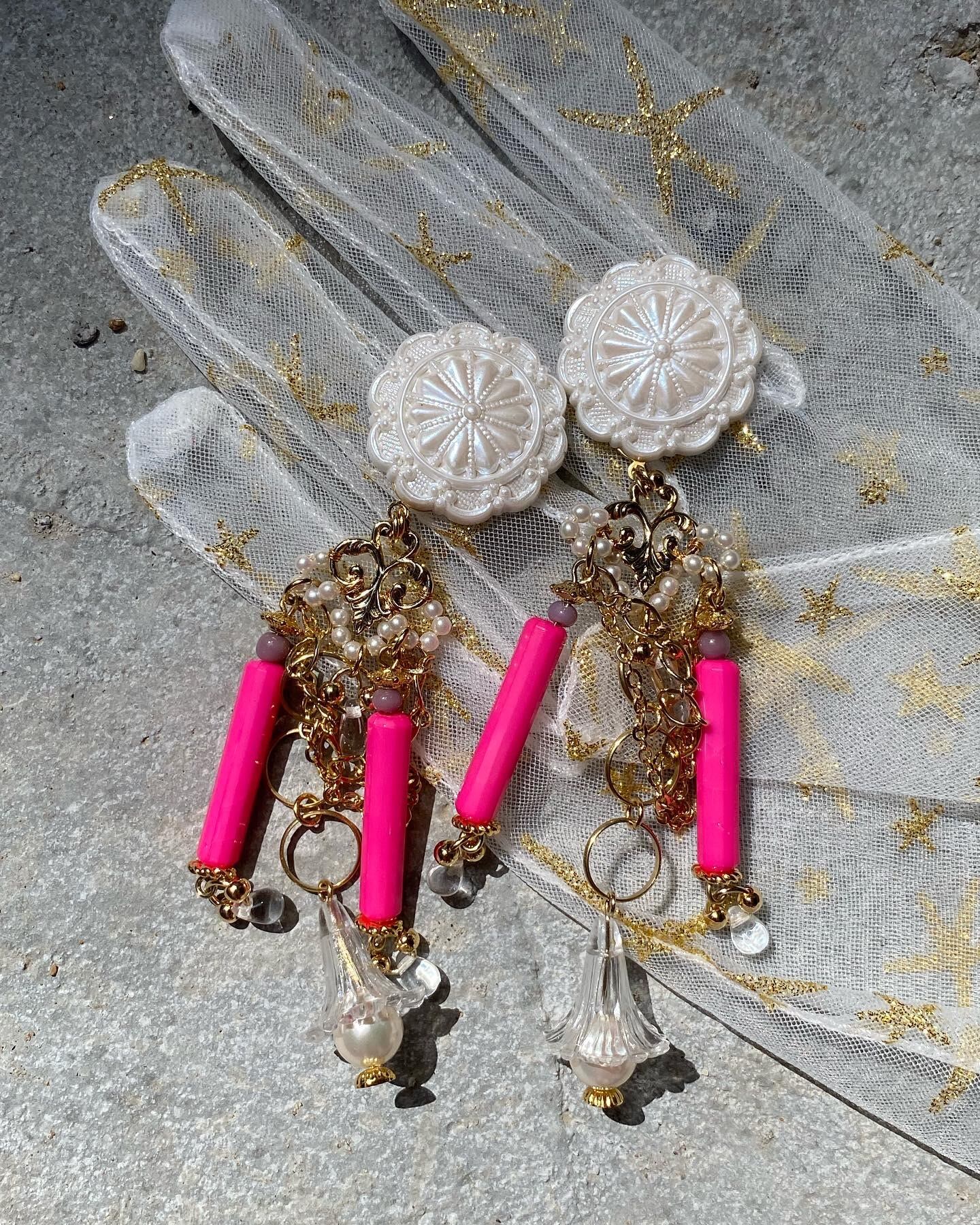 材質:デッドストックパーツ、アクリル、合金、チェコガラス、ドイツ製アクリル、チタン(ピアスポスト部分)