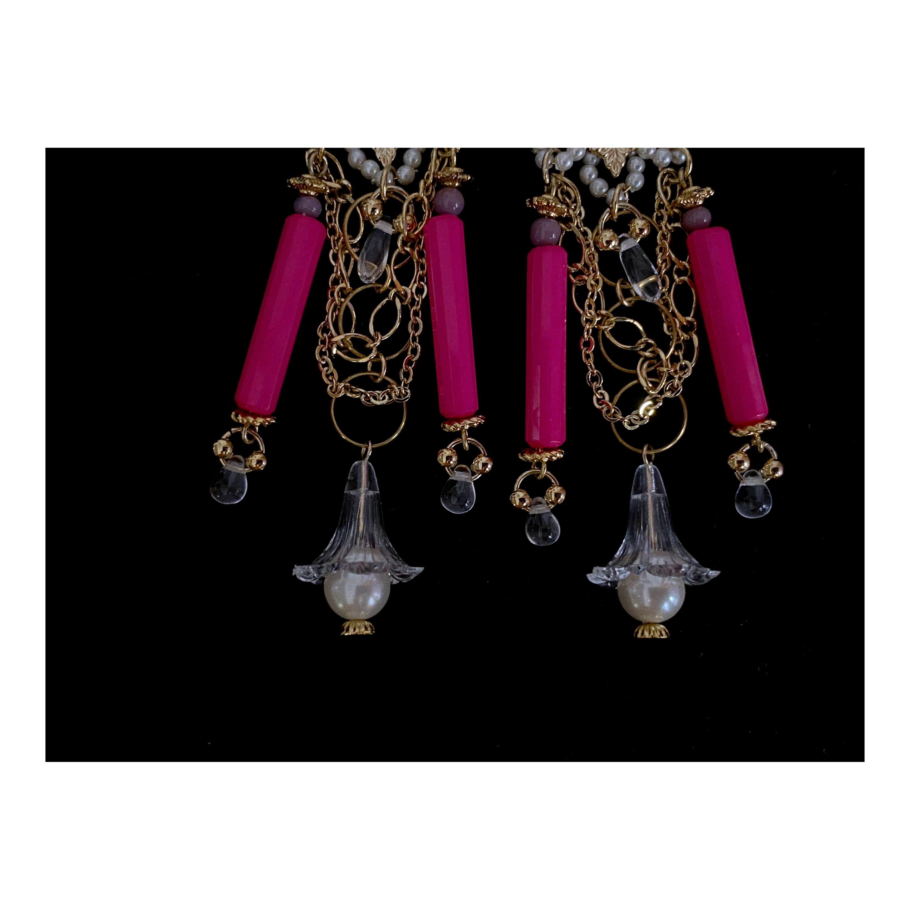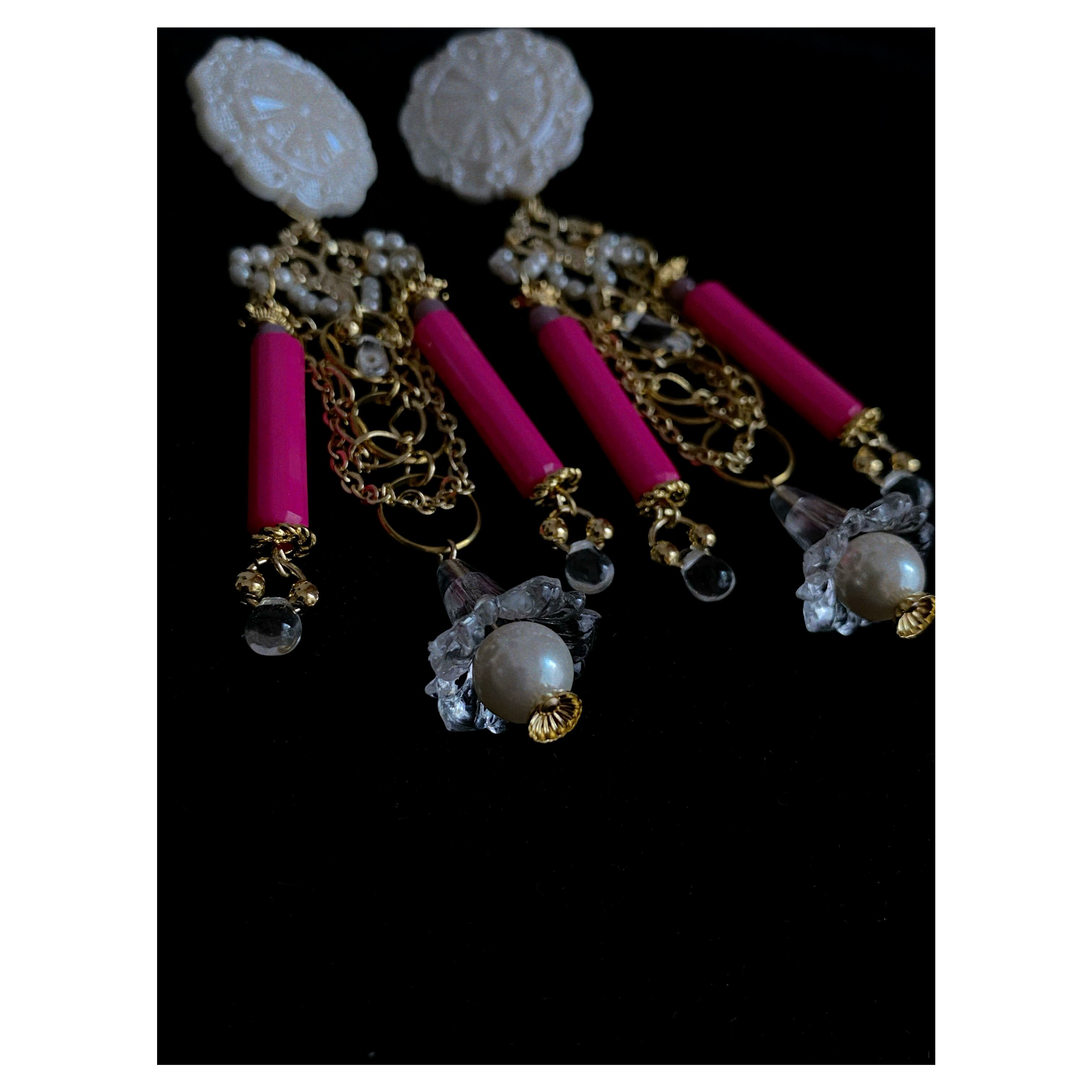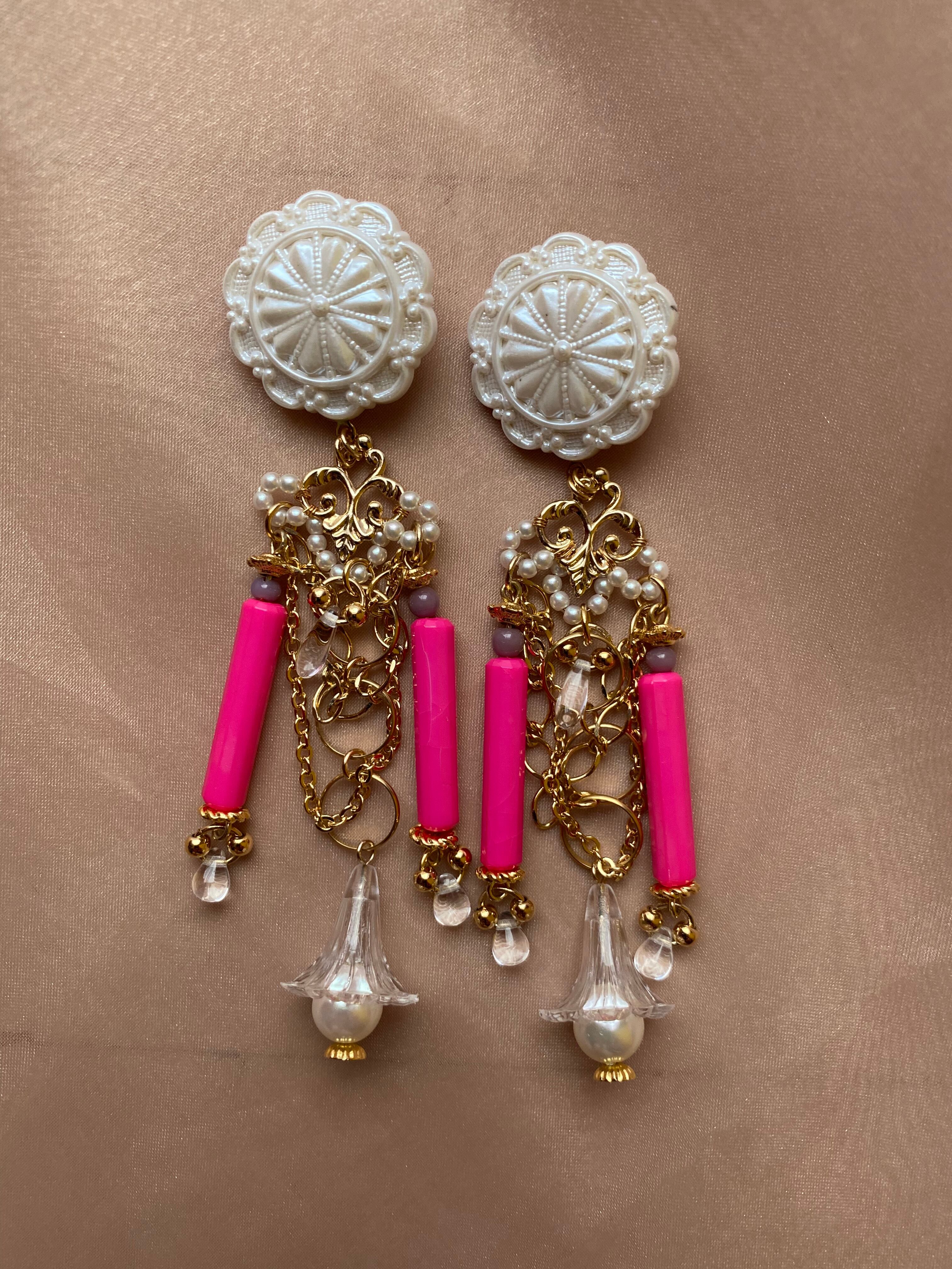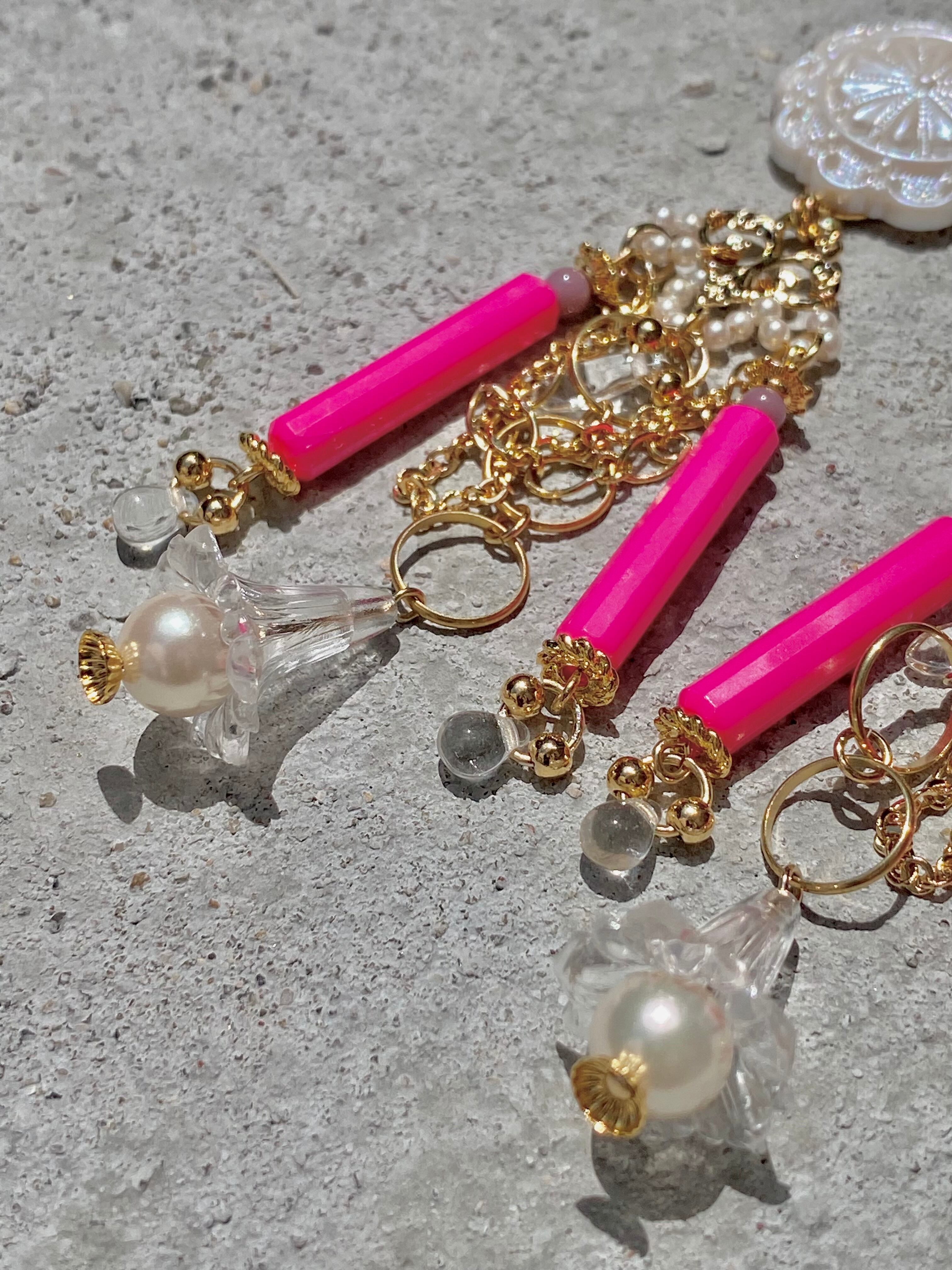 パールホワイト×ビビットカラーのシャンデリアピアス/イヤリング