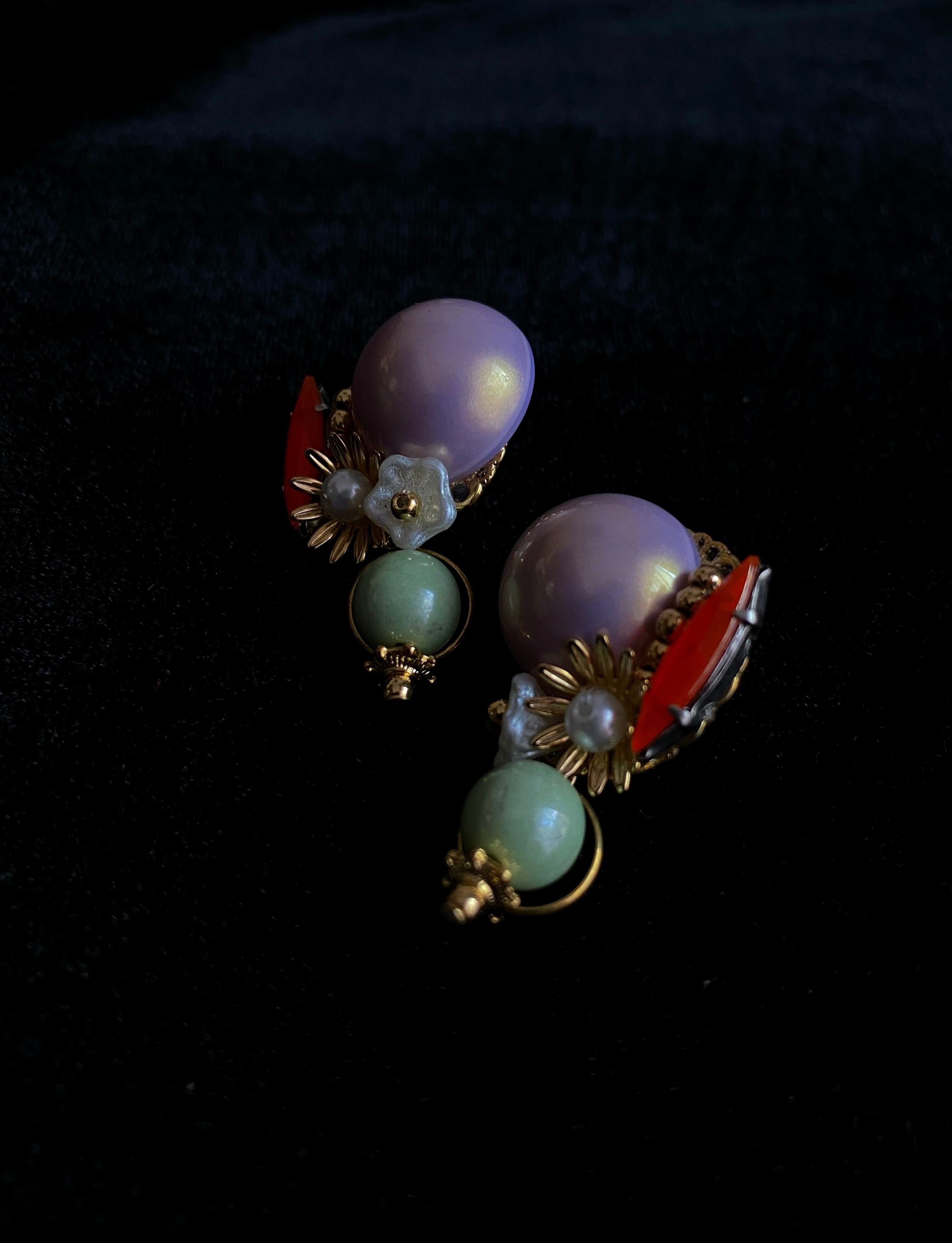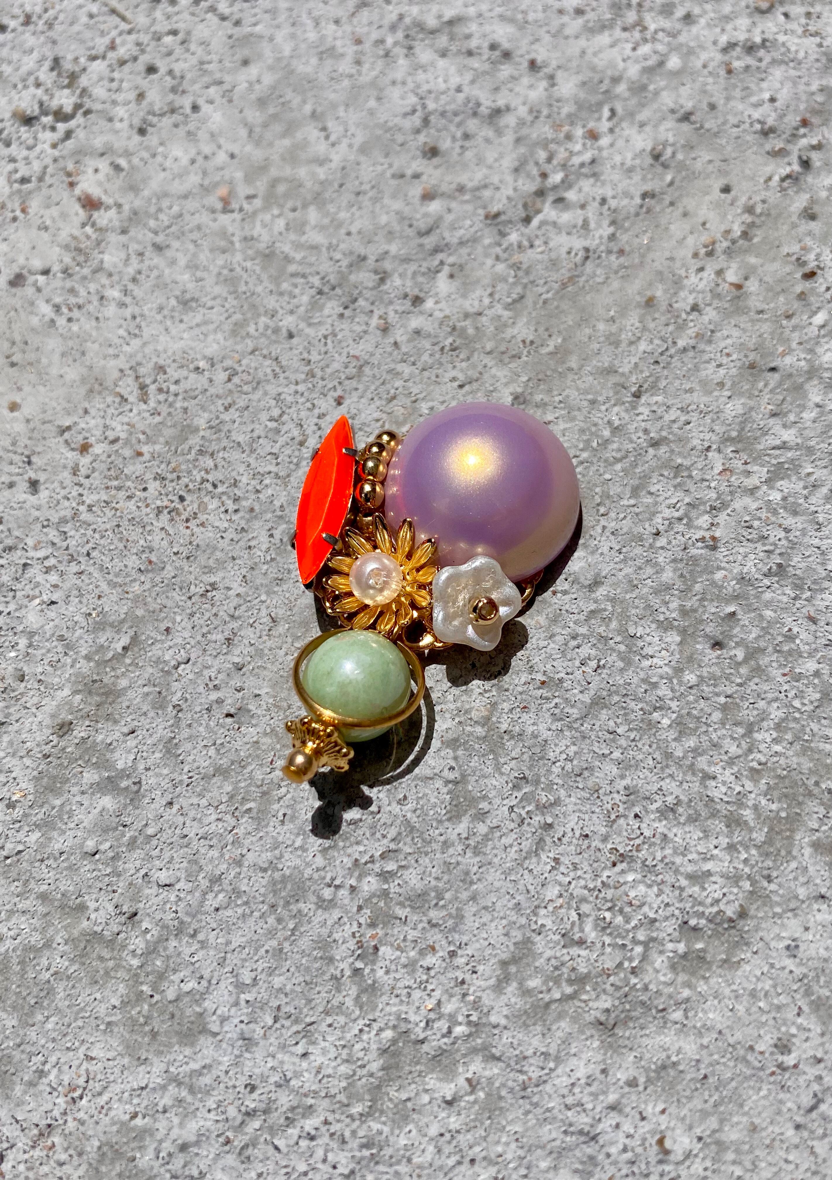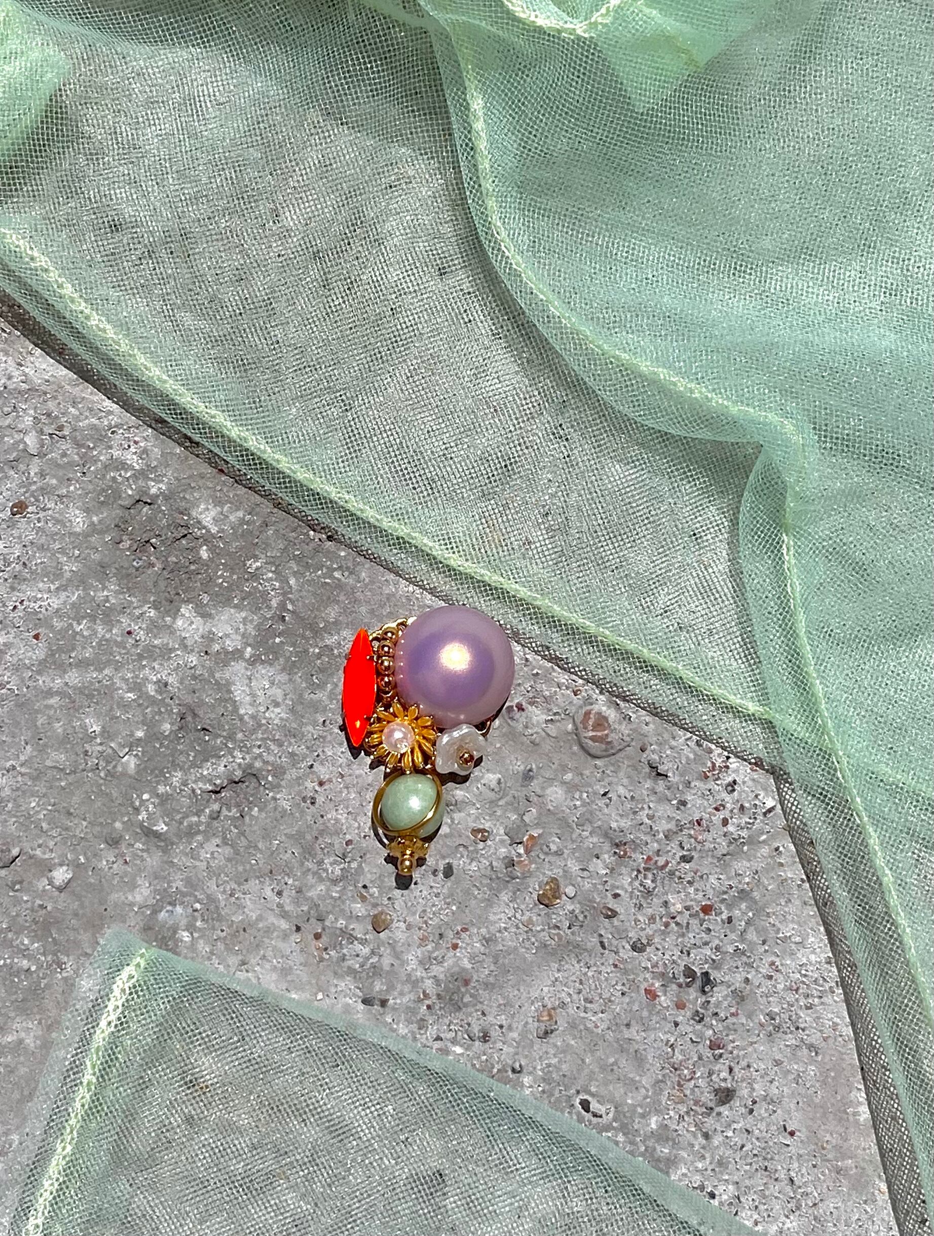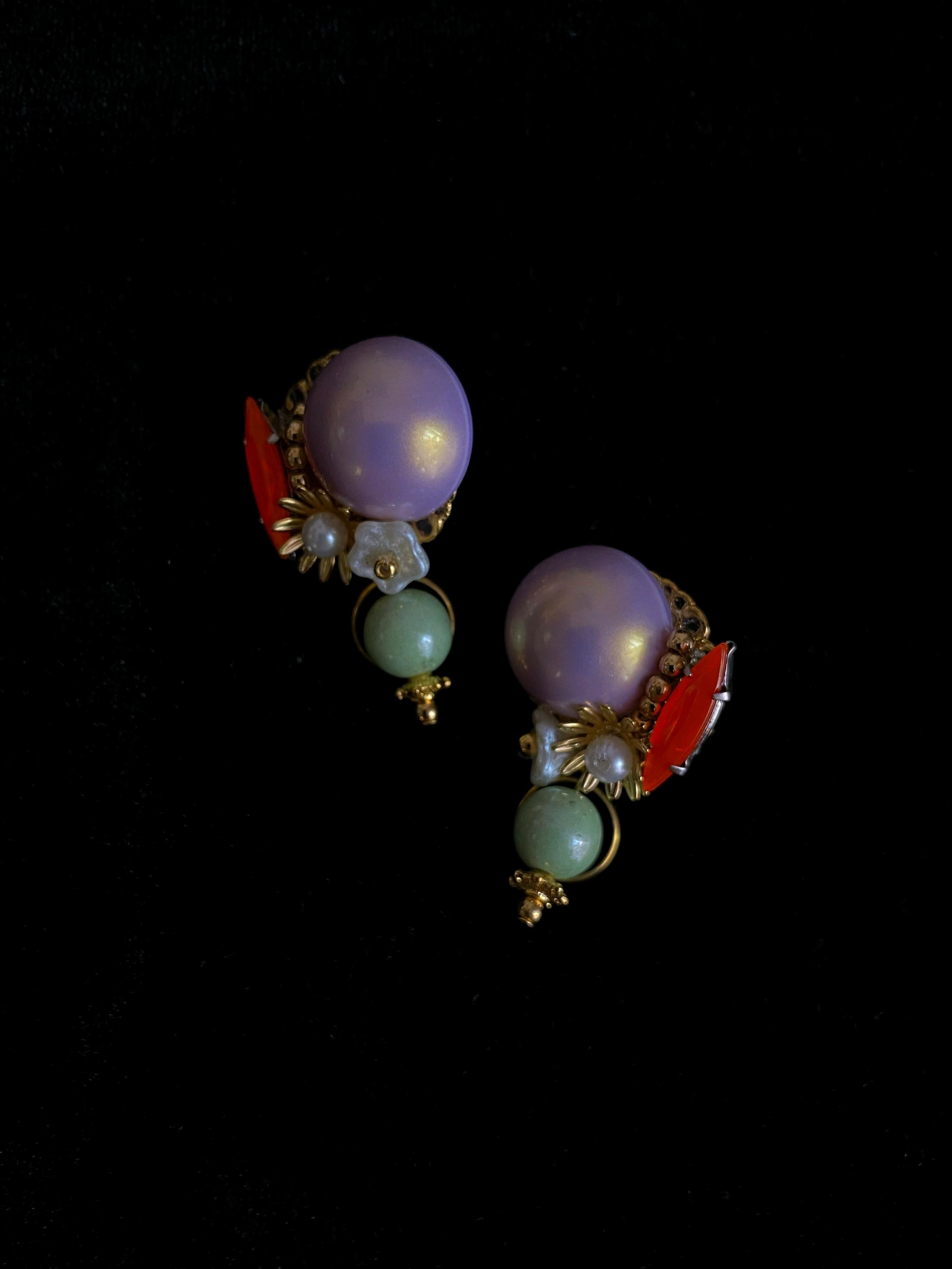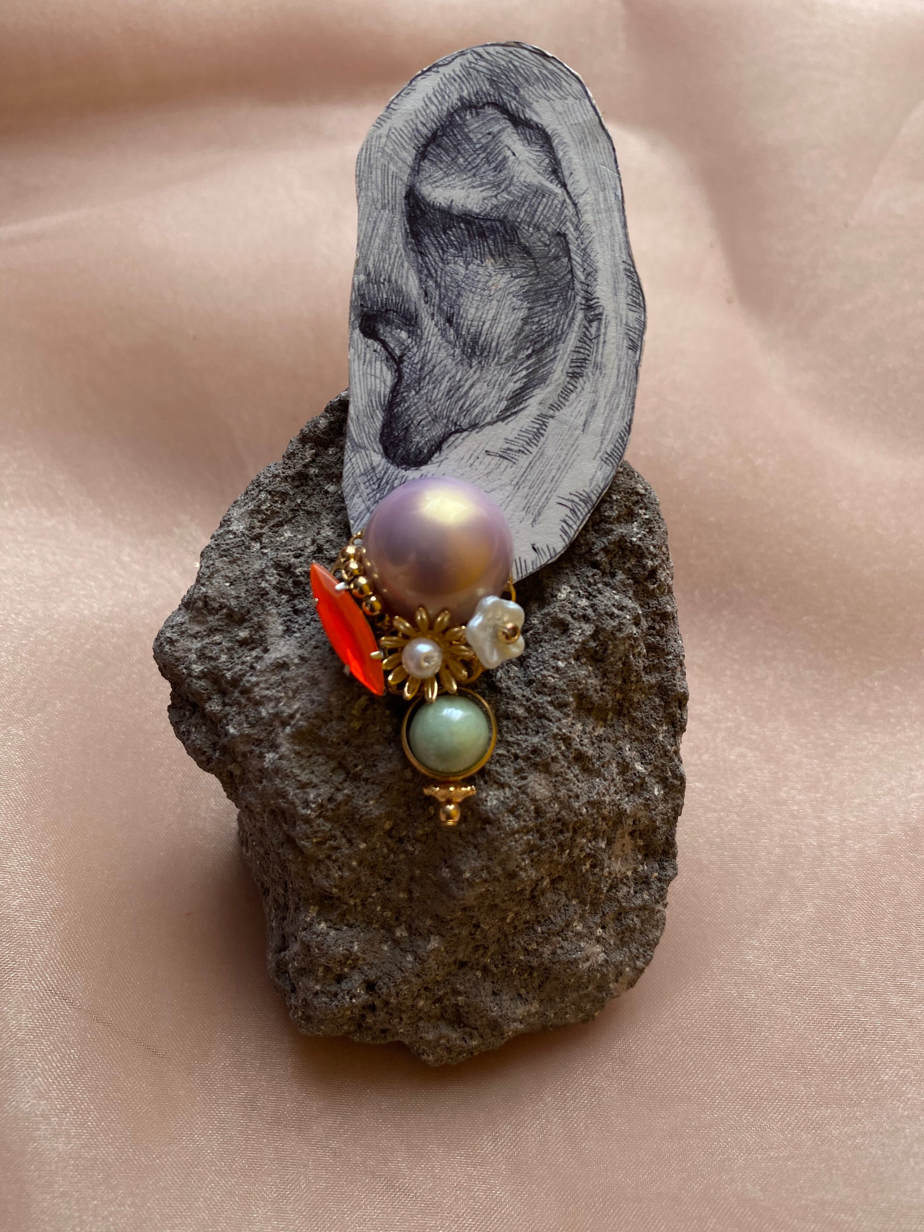 眠たい色の中に目が覚めるようなネオンカラーを差し込んだイヤーアクセサリー
