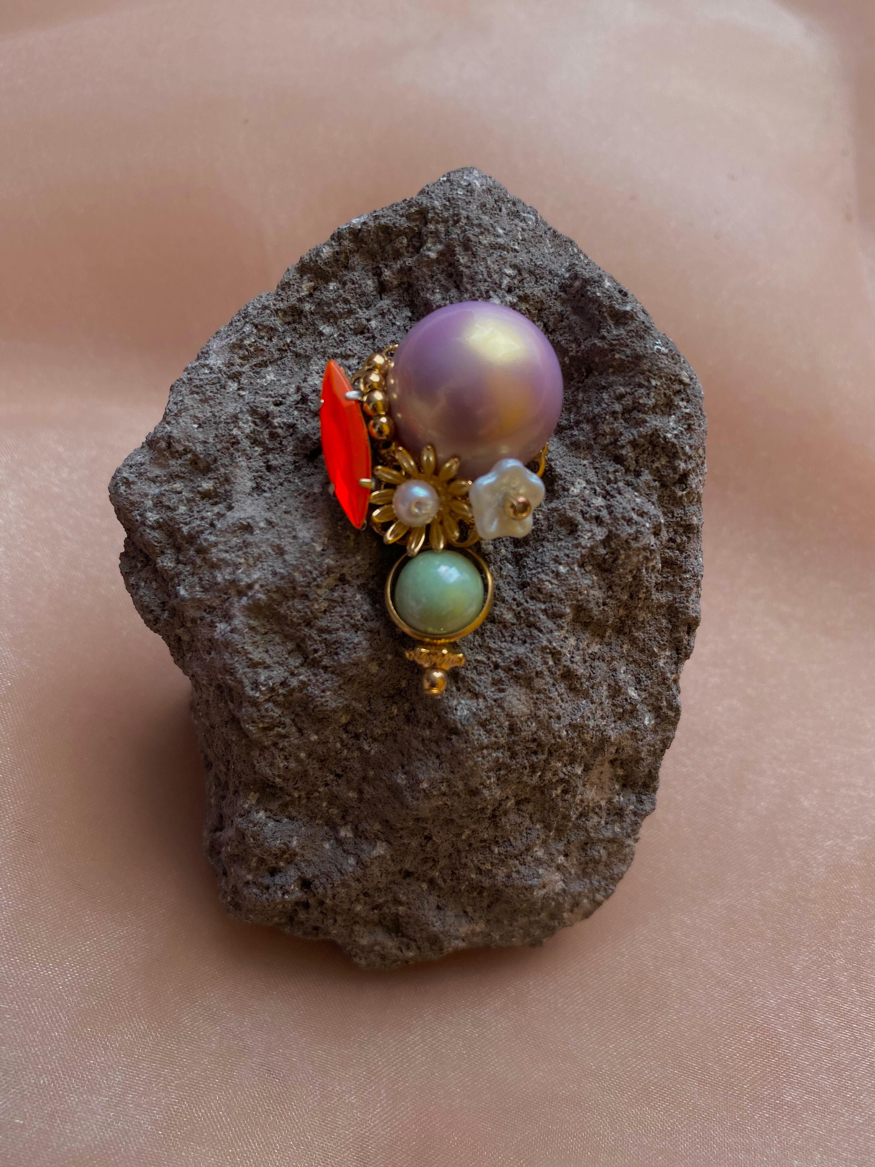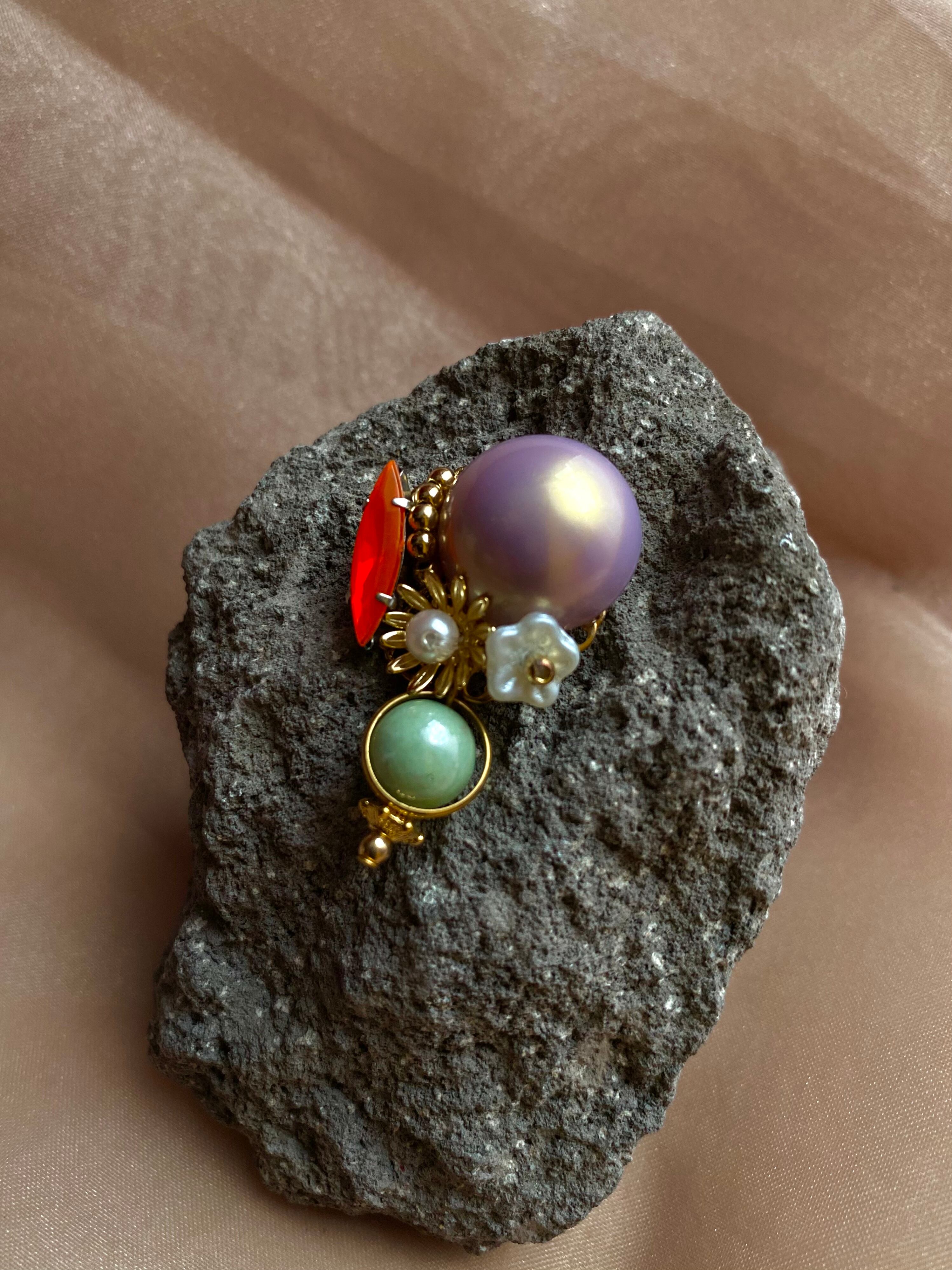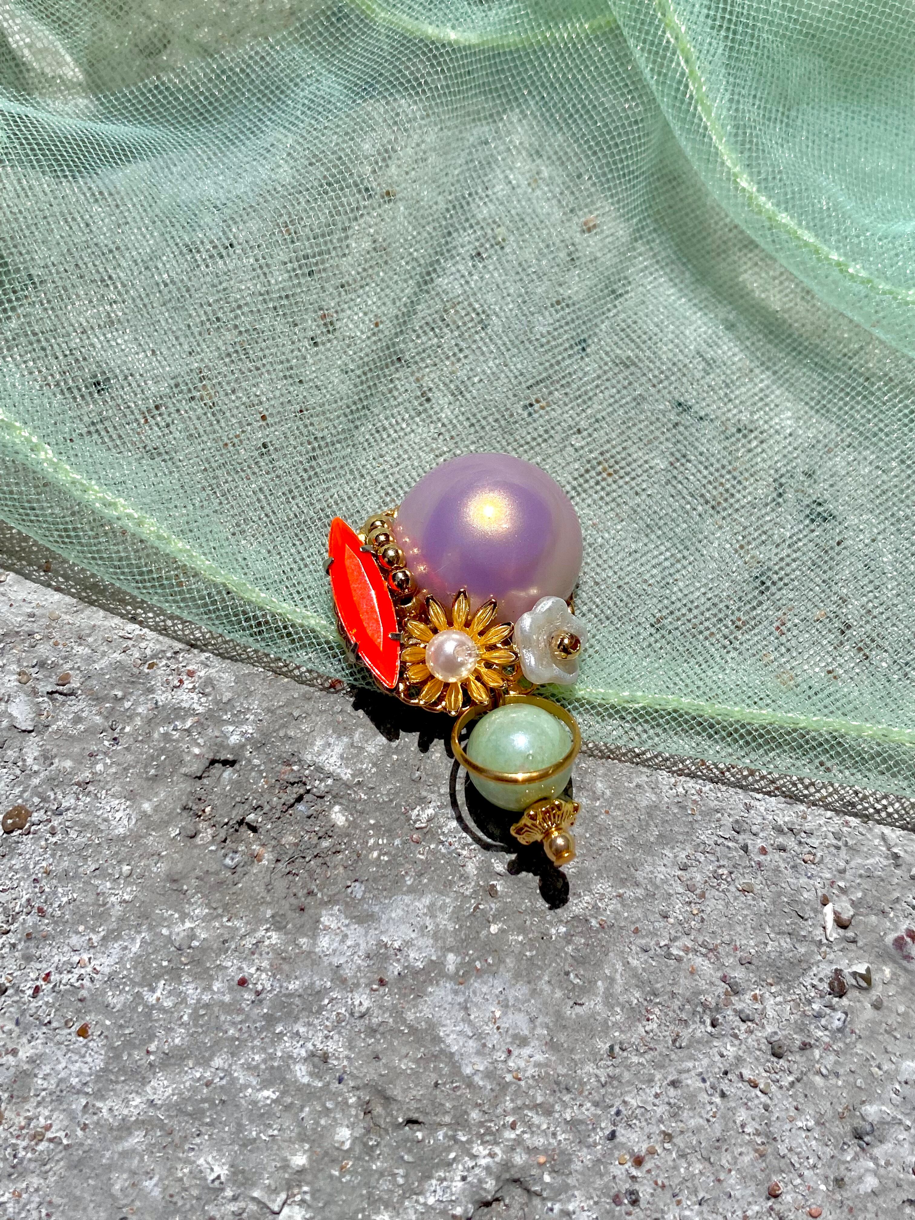 材質:デッドストックパーツ、アクリル、チェコガラス、合金、チタン(ピアスポスト部分)