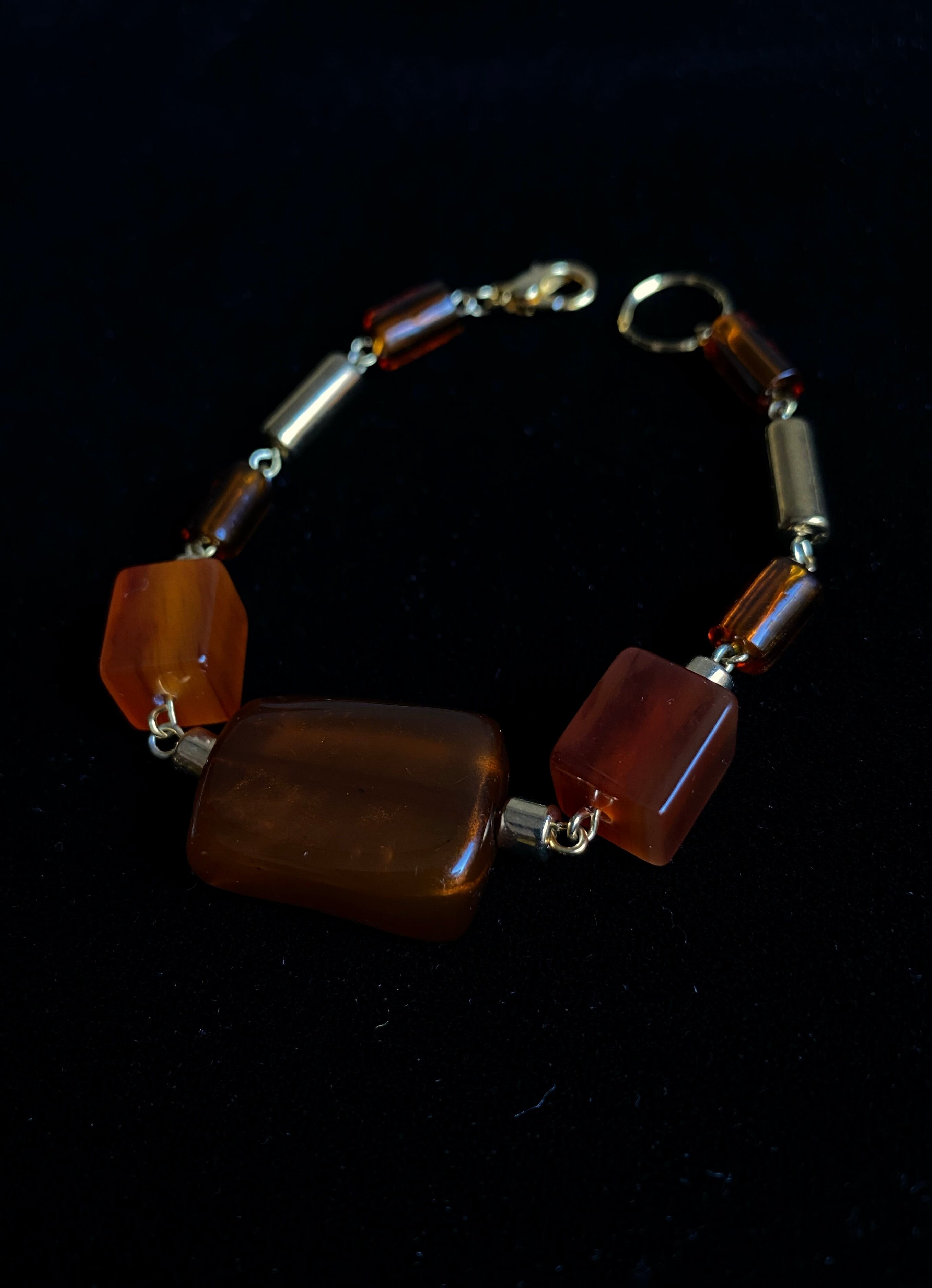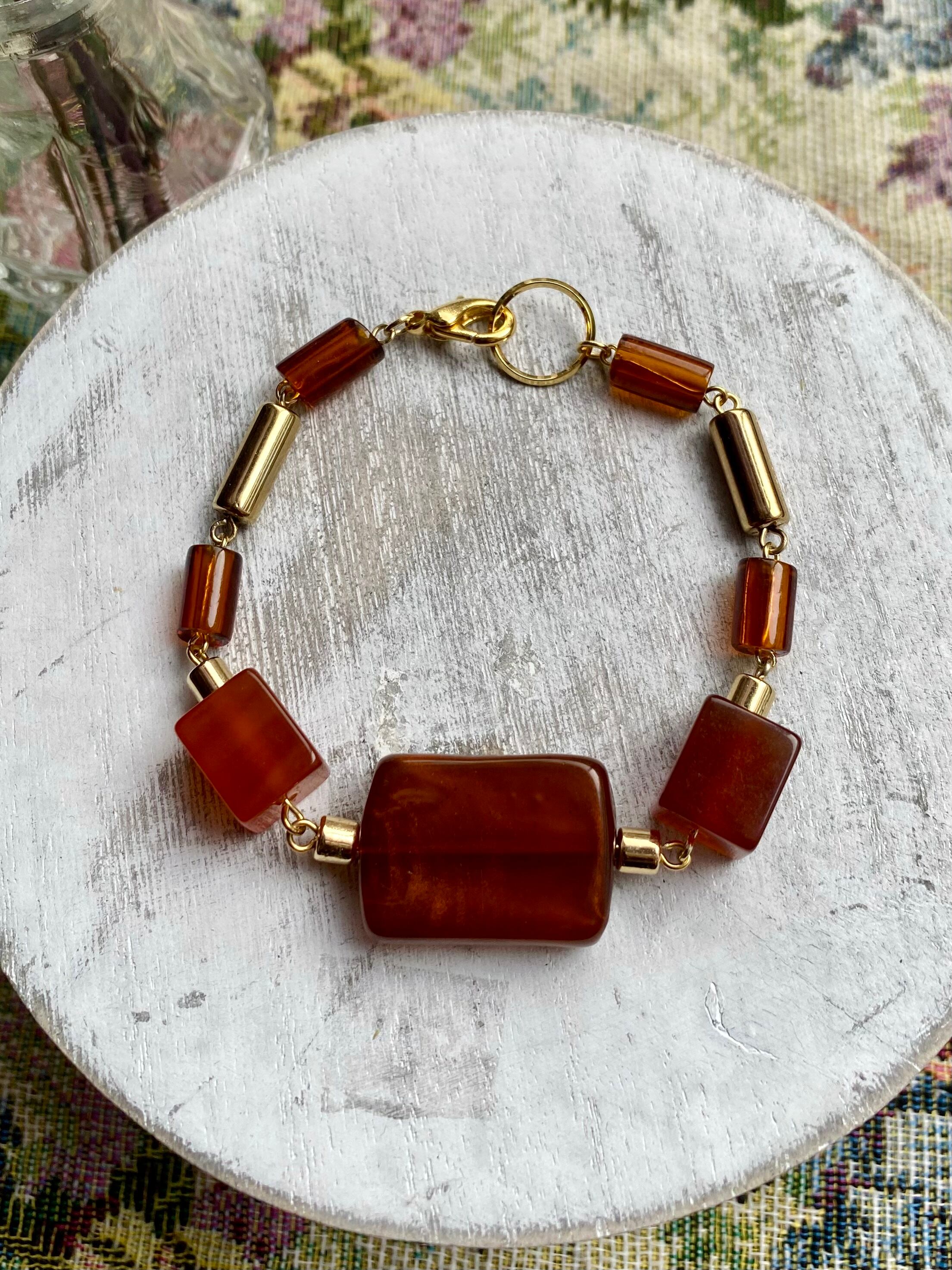 ヴィンテージパーツと瑪瑙のビーズを組み合わせてヴィンテージライクなデザインに仕上げたブレスレット