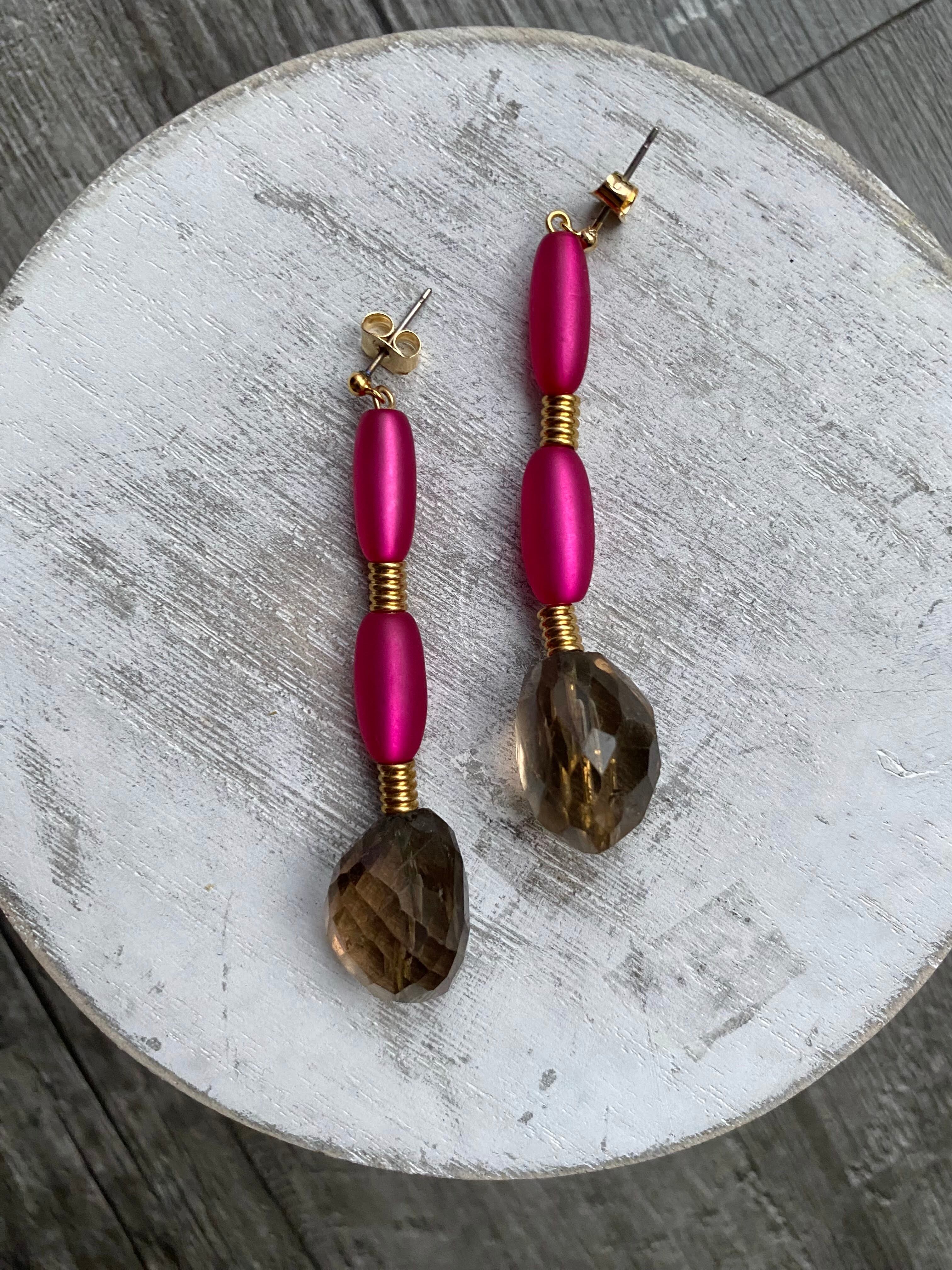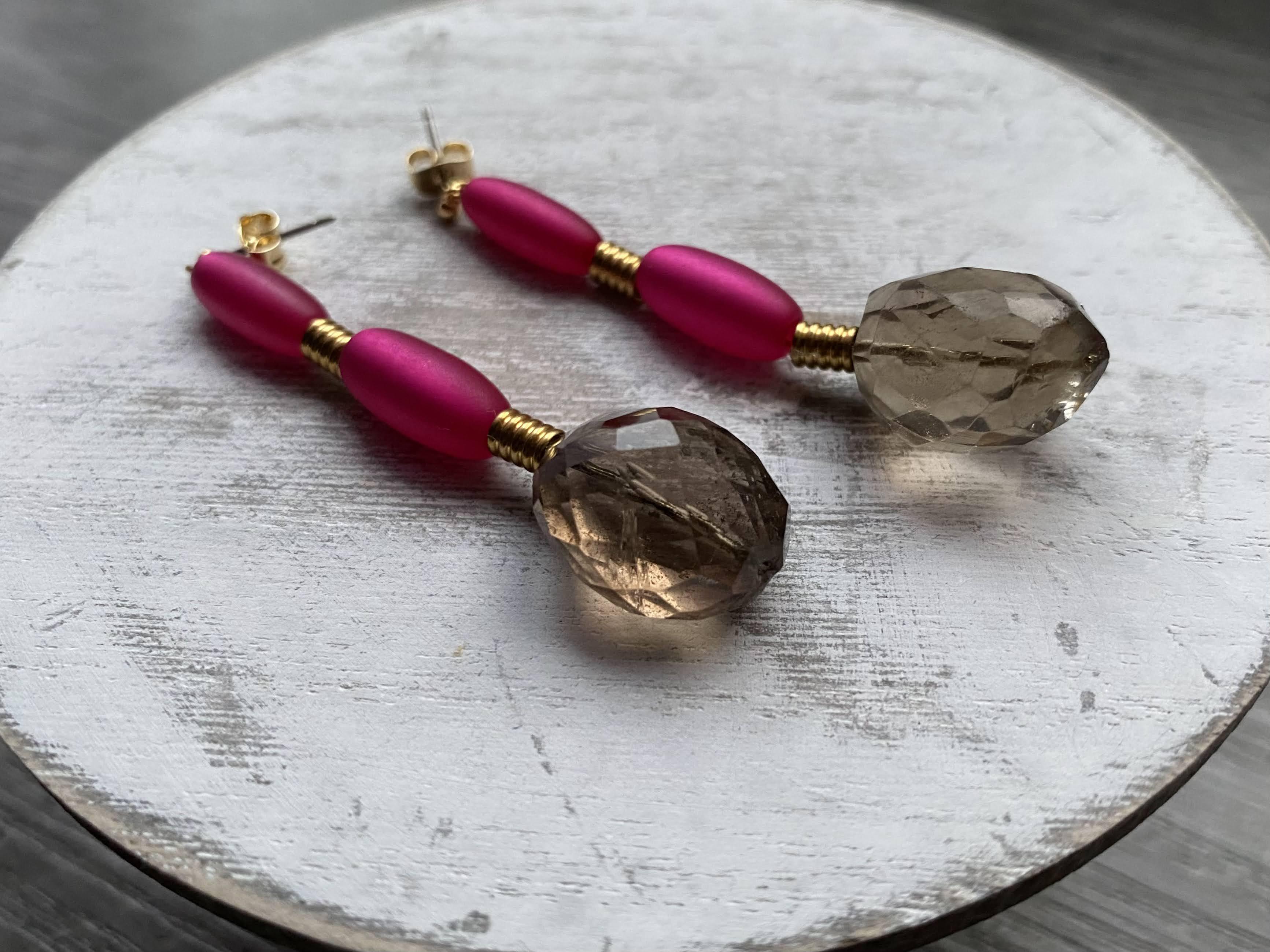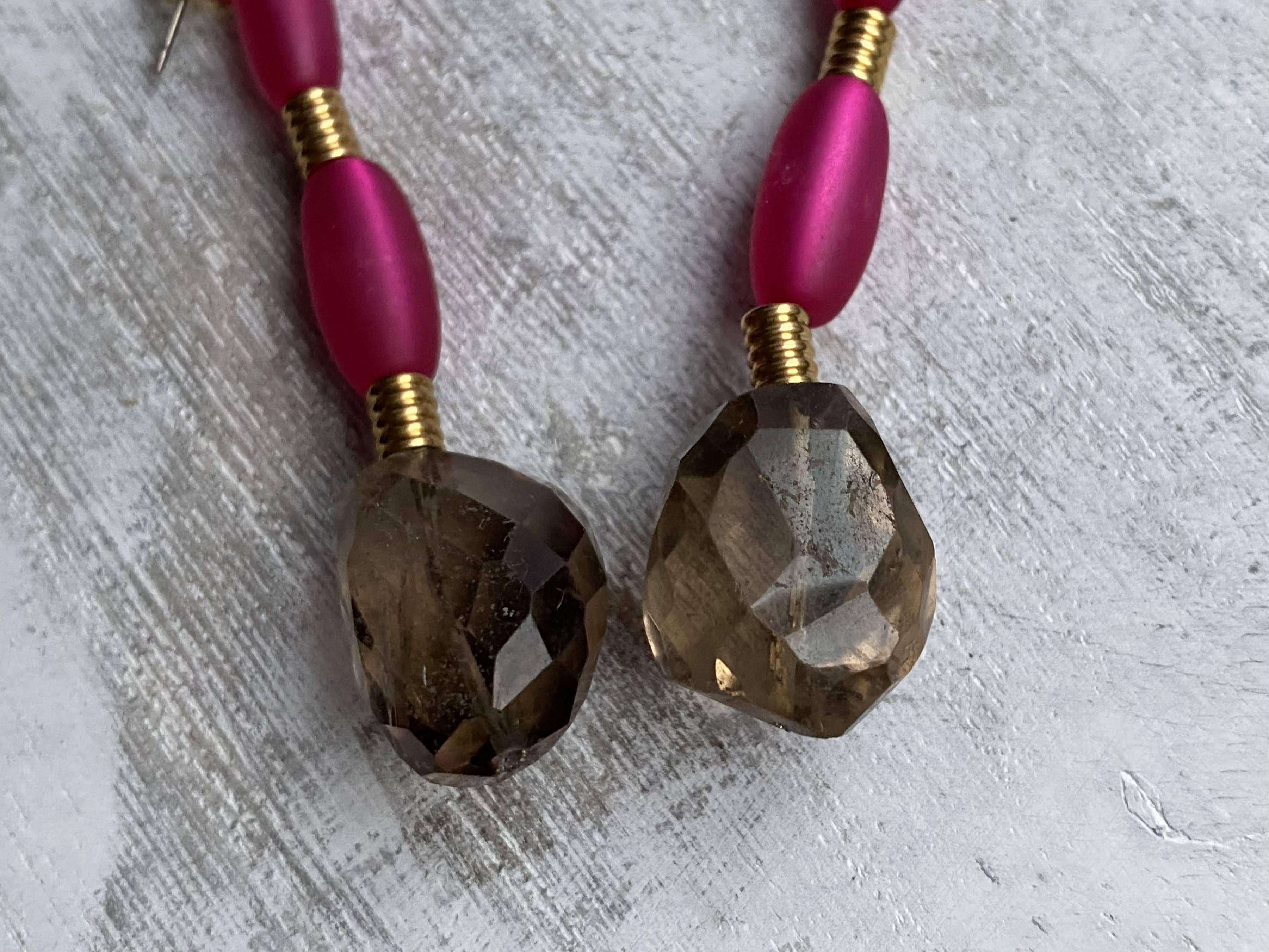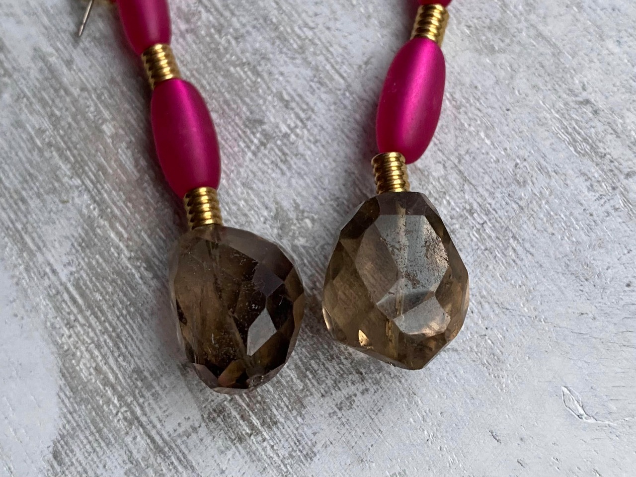 材質:スモーキークウォーツ、ヴィンテージビーズ、真鍮パーツ、チタン(ピアスポスト部分)