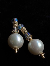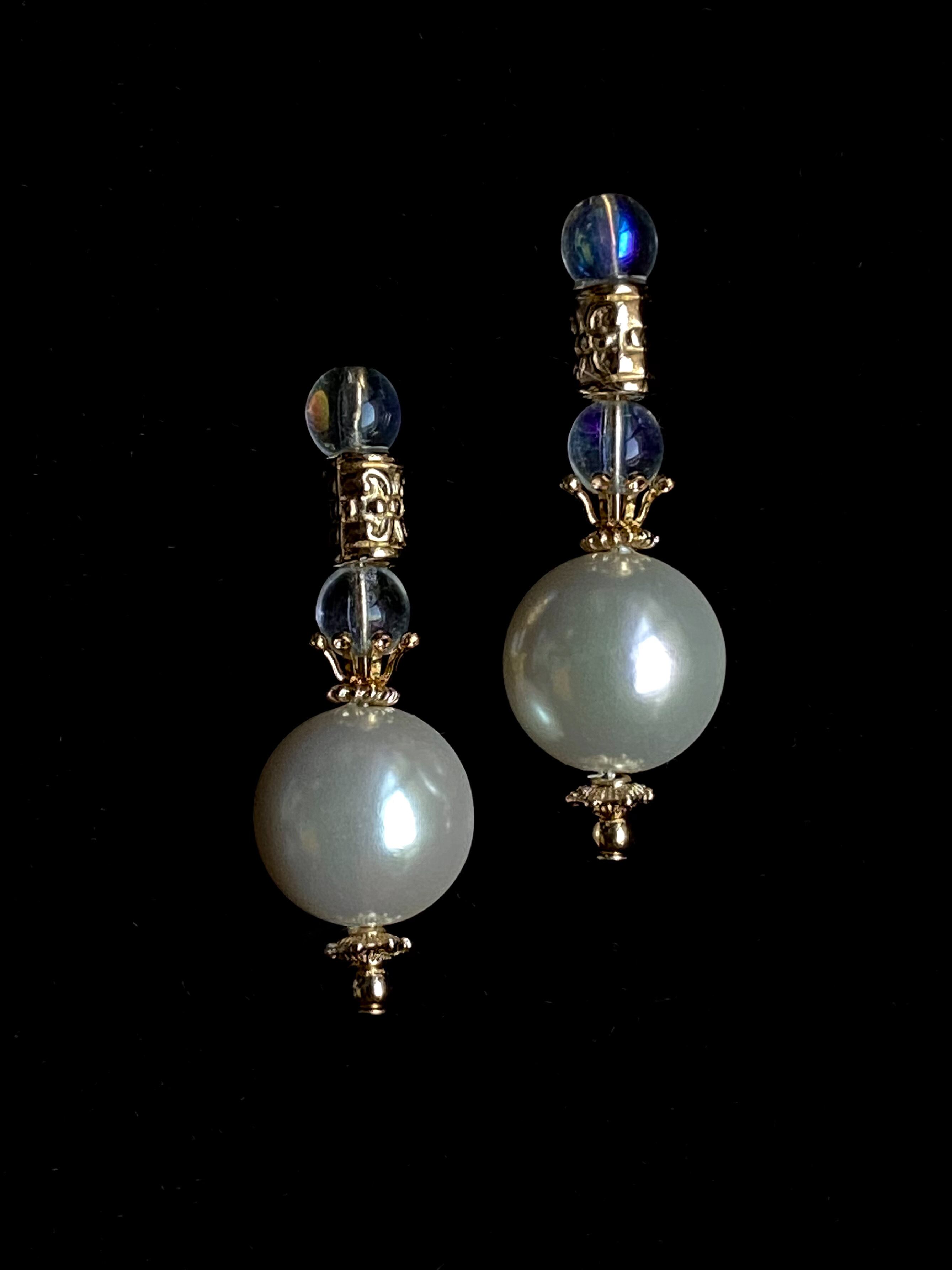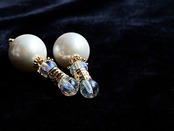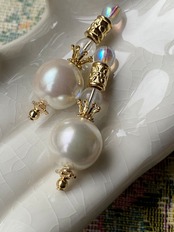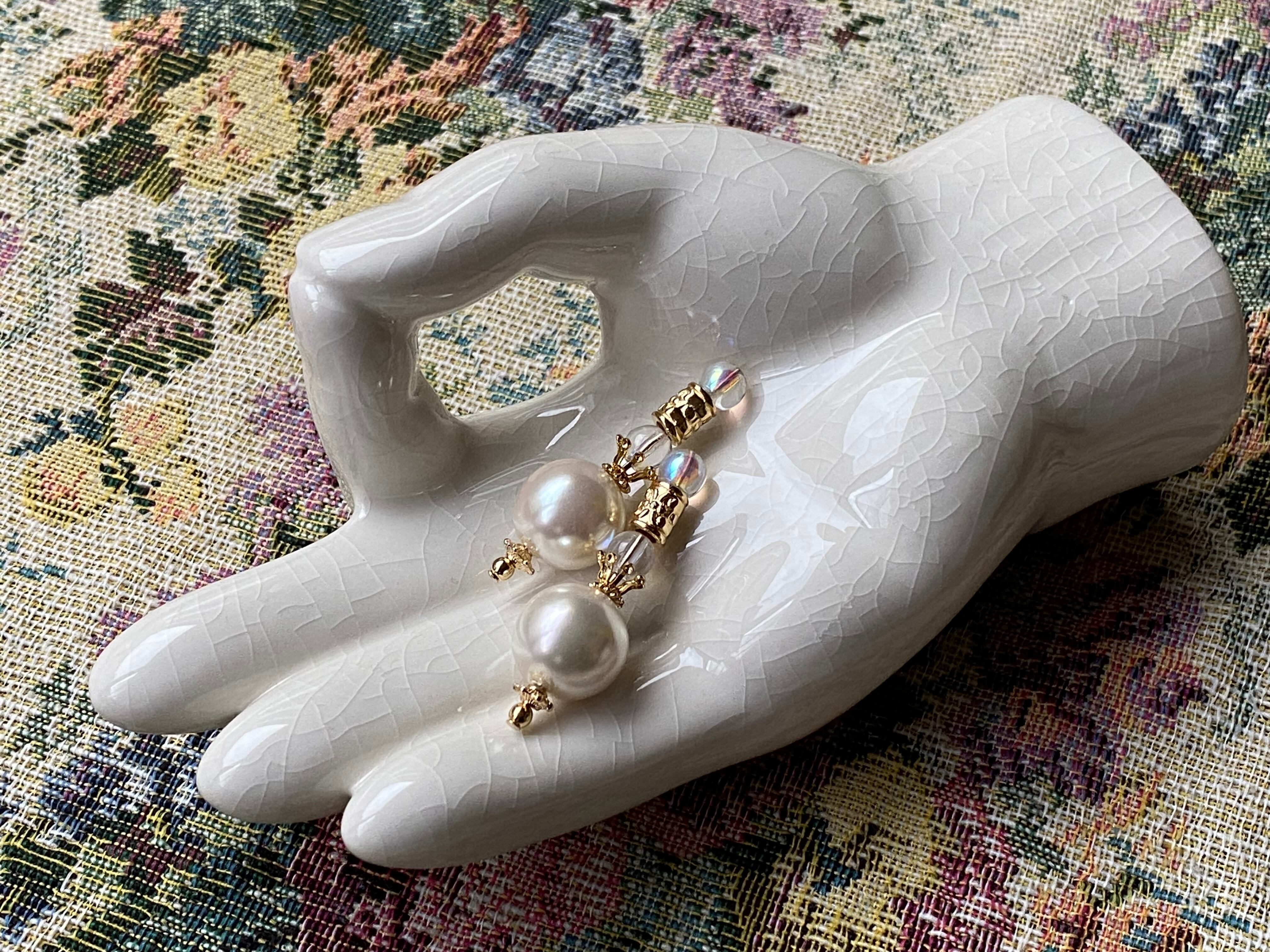 材質:シルキーパール、合金、CCBパーツ、チェコガラス、チタン(ピアスポスト部分)