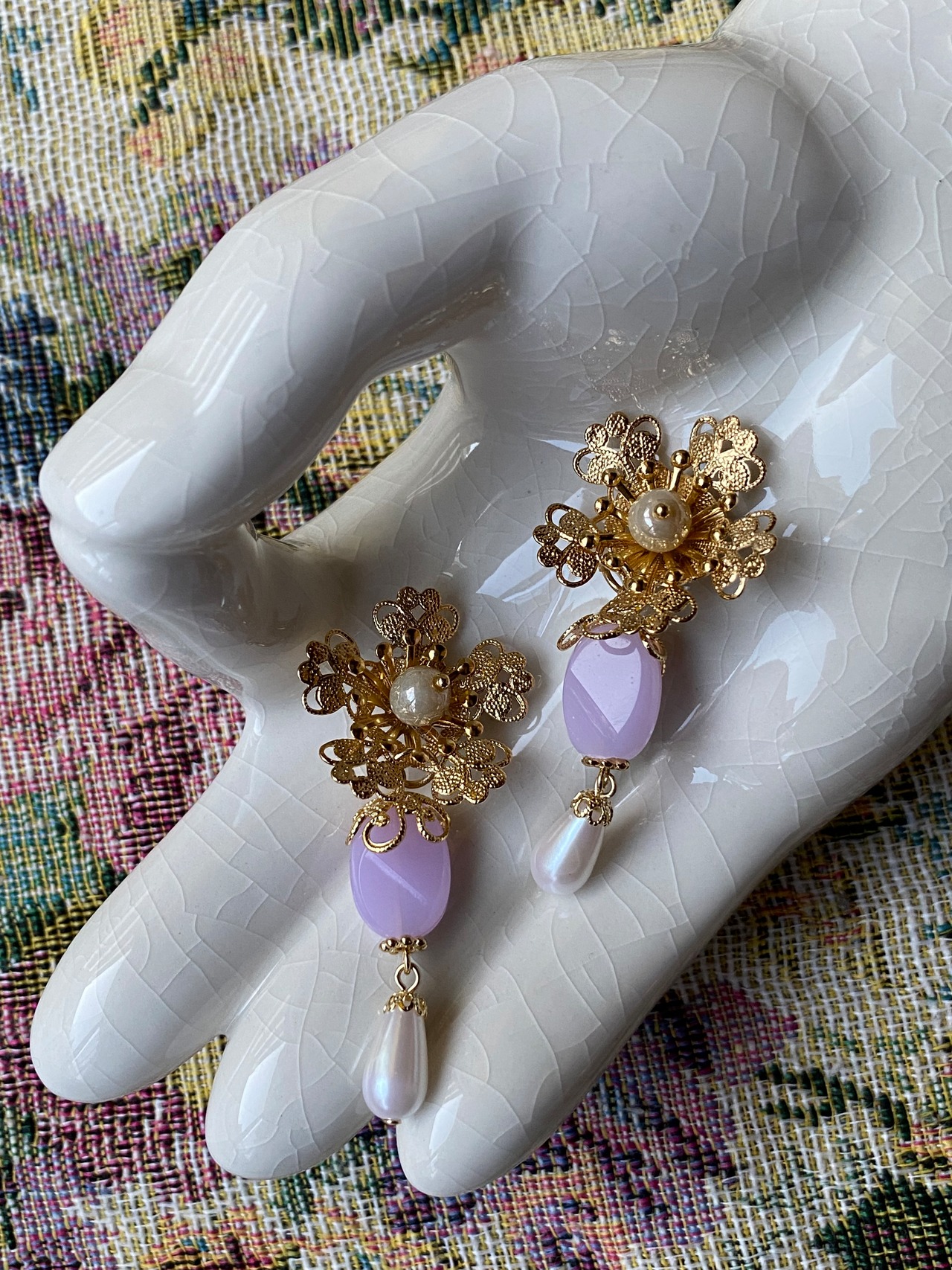 材質:合金、CCBパーツ、ドイツ製アクリル、デッドストックビーズ、チタン(ピアスポスト)