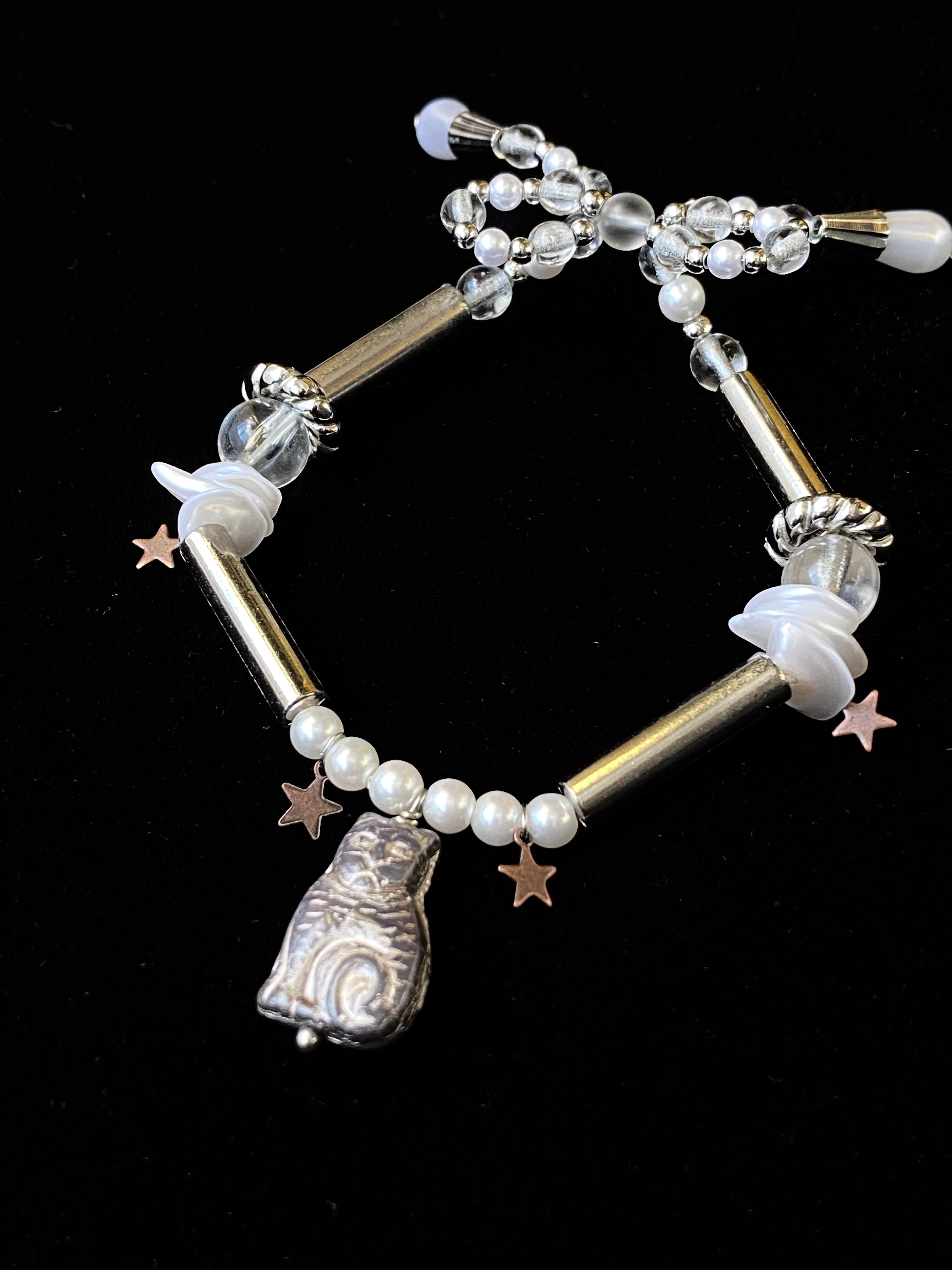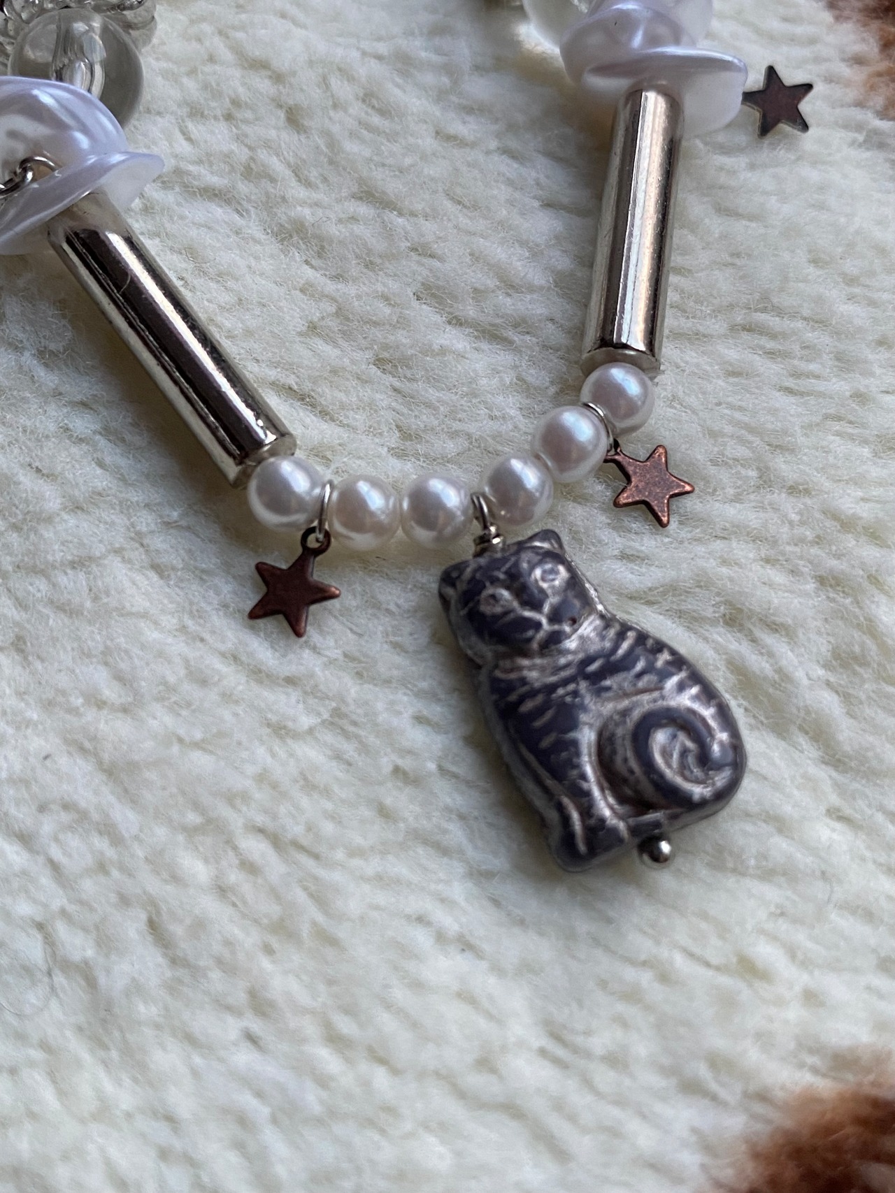 カラー:パールはホワイト、星のチャームはカッパー(銅色)、その他のメタルパーツはロジウムカラー